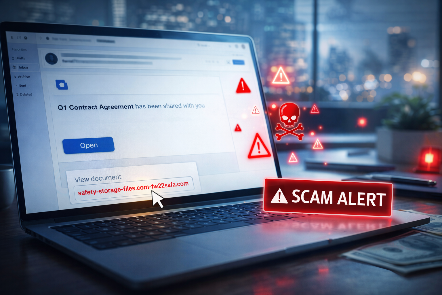 An employee receives an email stating that a document was shared with them. It’s usually something ordinary like a contract in DocuSign, a spreadsheet in OneDrive or a file in Google Drive.