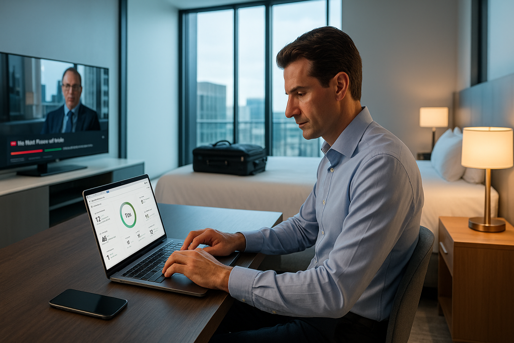 - Use your phone’s hotspot, not hotel WiFi, for work tasks